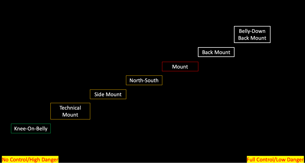 In Mathematical Jiu-Jitsu, fundamentals emphasize control above all else in effort to keep the practitioner safe as well as the opponent. Every decision should begin with how much control and danger you are exposed to from your position, and every movement should be based on advancing to more control and less danger exposure. Where you exist in this is a spectrum that I often reference as “The Spectrum of Control”.
