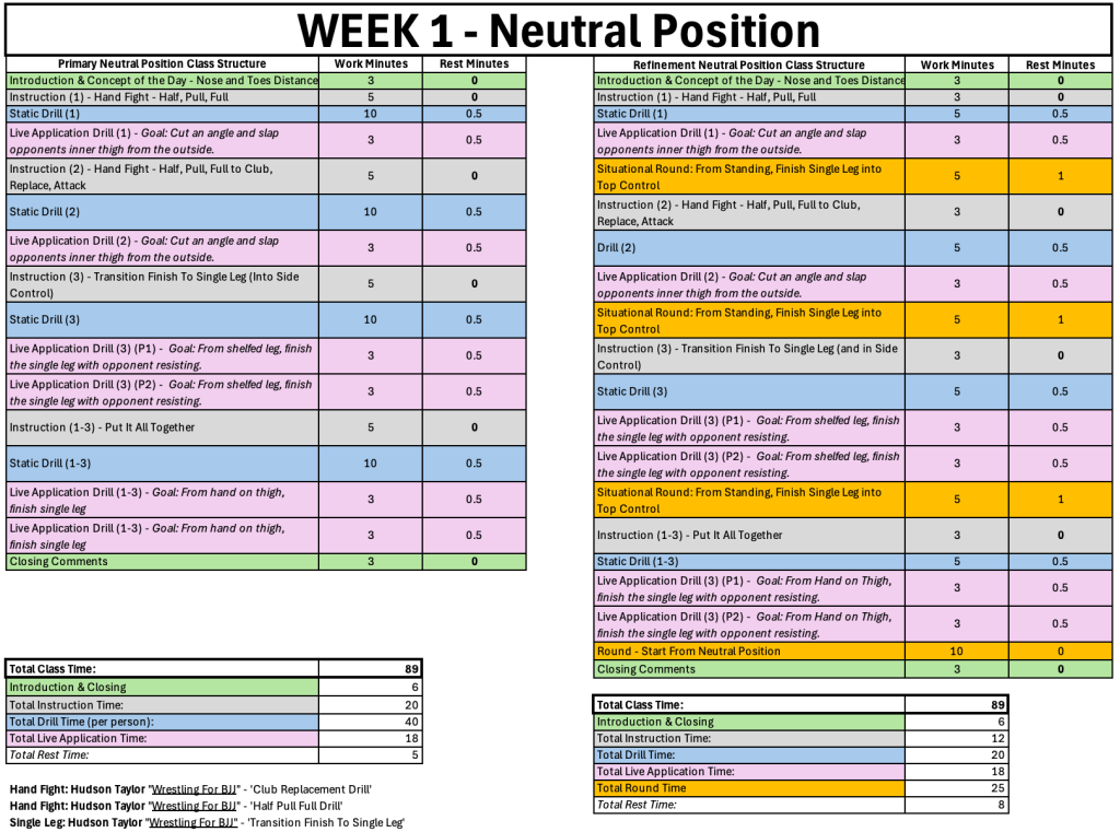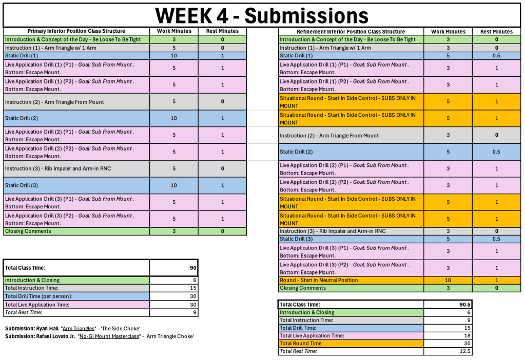 You learned the moves in the class before, now it’s time to really work on refinement and optimization. Drill the move, work on live application scenarios, then attempt them in situational rounds. The refinement comes from your partner providing you feedback in the drill and live application, then applying that feedback in a situational round. You then return the favor, iterating multiple times to take your technique to the next level.